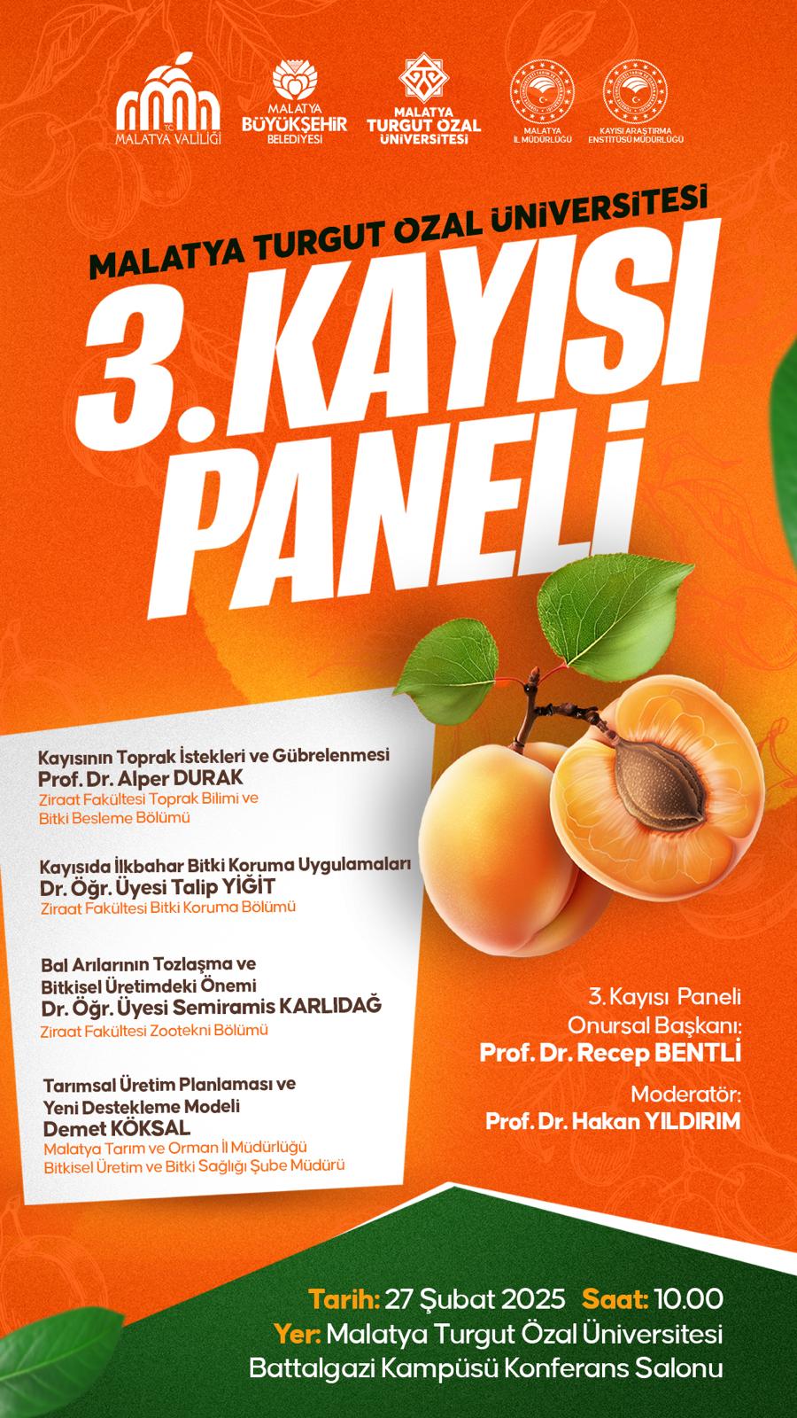 3. Kayısı Paneli 27 Şubat 2025 tarihinde düzenlenecektir. Detaylar için . 3. Kayısı Paneli Program ve Davetiye tıklayınız.